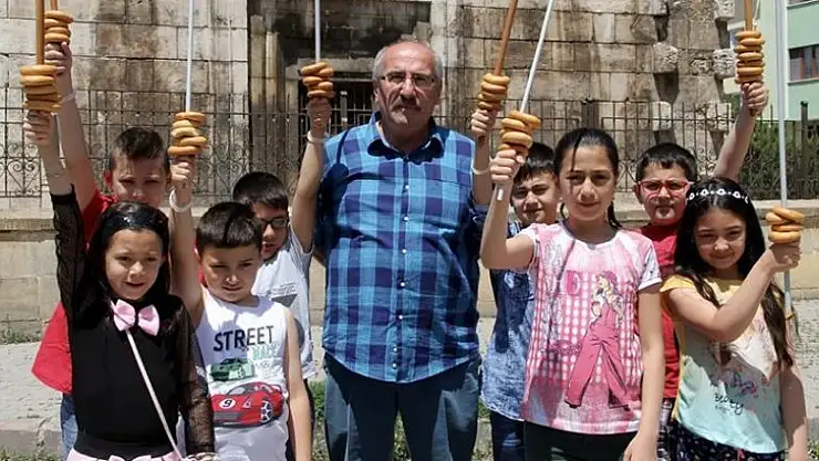 Sivas'ta, Ramazan Bayramı arifesinde ellerindeki oklavalarla kapılara vuran çocuklar, yöreye özgü bayram simiti topladı.