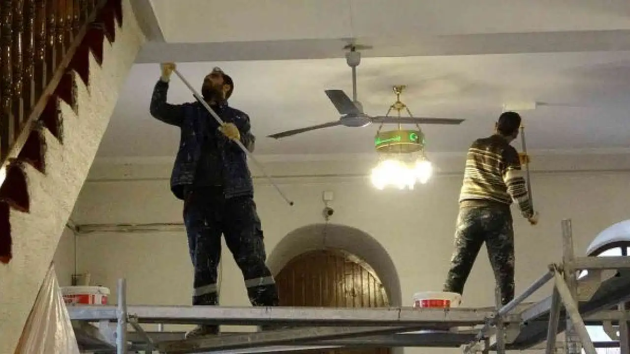 Osmaniye'de uyuşturucu bağımlısı şahıs tarafından kapısı yakılan tarihi Envar'ül Hamit Camii'nde tadilat başlatıldı. Yangında çıkan islerden dolayı siyahlaşan duvarlarda boya çalışmaları yapılırken, tadilat nedeniyle cami 11 Mart tarihine kadar kapalı kalacak.