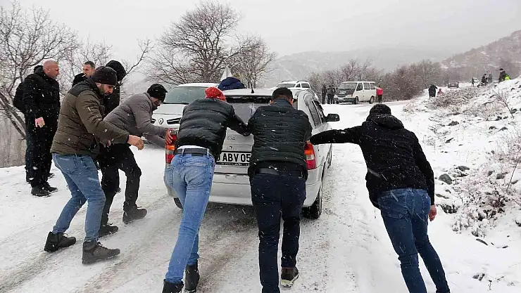 Tokat'ta kar eğlencesi için Topçam yaylasına çıkmak isteyenler kar ve buzlanma nedeniyle yolda kaldı.
