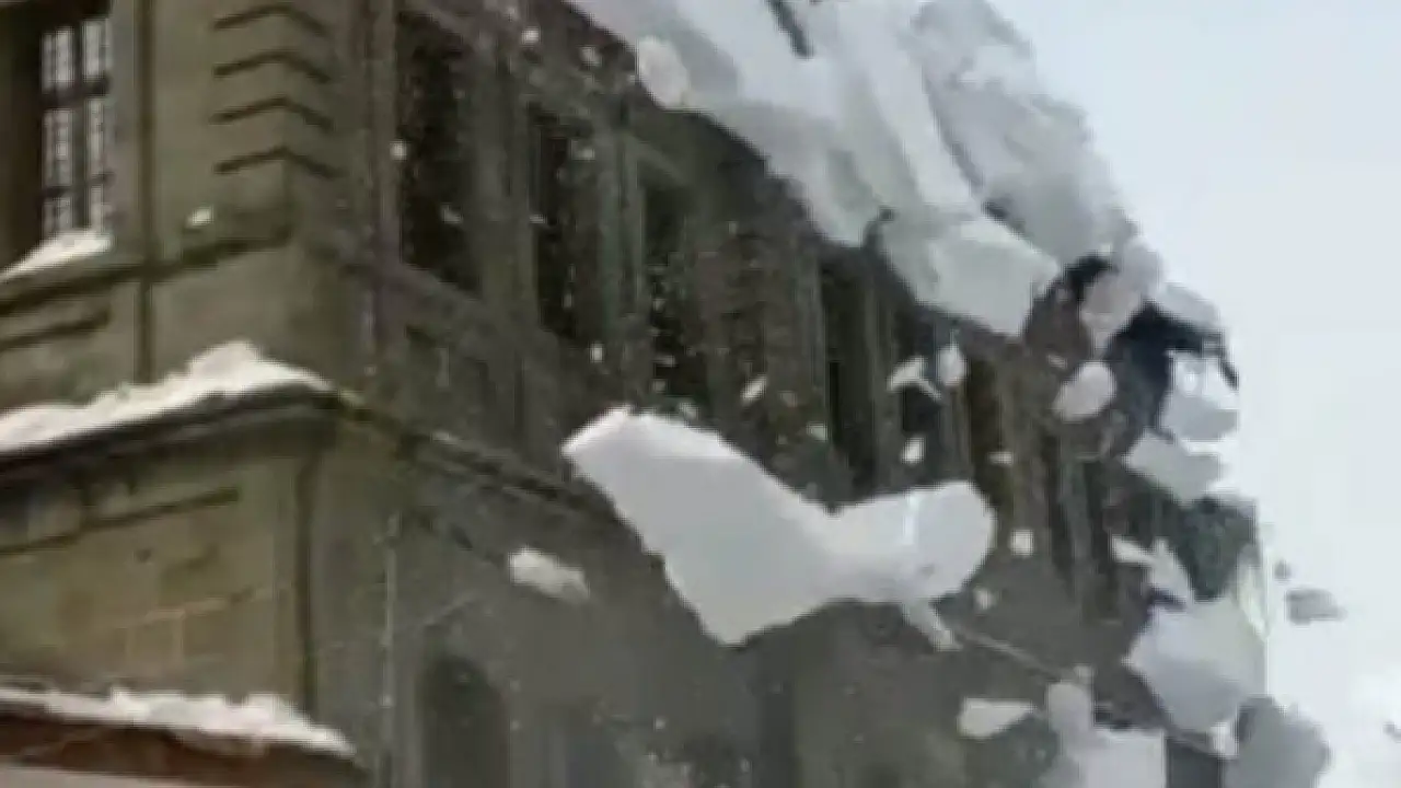 Bitlis Belediyesine ait tarihi binanın çatısında biriken kar hızla aşağı düşmeye başladı. Binanın önünde bulunan demir korkuluklar karın ağırlığına dayanamayarak yerinden söküldü. Bitlis'te kar kalınlığı 2 metreyi bulurken, çatılardan kopan kar kütlelerinin görüntüsü çığı andırıyor.