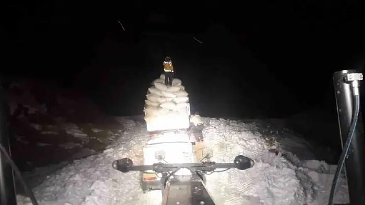 Elazığ'ın Sivrice ilçesinde yolda kalan saman yüklü kamyonet, İl Özel İdaresi ekiplerinin yoğun çalışması sonucu kurtarıldı.