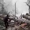 Kar ve rüzgardan yola devrilen ağaç kesilerek kaldırıldı