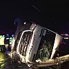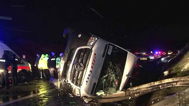 Kaza sonrası yan dönen servis aracında bulunan özel bir şirkette çalıştıkları öğrenilen 11 kişi yaralandı. İhbar üzerine olay yerine çok sayıda itfaiye, sağlık, polis ve UMKE ekibi sevk edildi. Araçta sıkışan yolcular itfaiye ekiplerinin çalışması sonucu çıkarıldı. Sağlık ekiplerinin olay yerindeki ilk müdahalesinin ardından yaralı 11 kişinin de hafif yaralandığı öğrenildi.