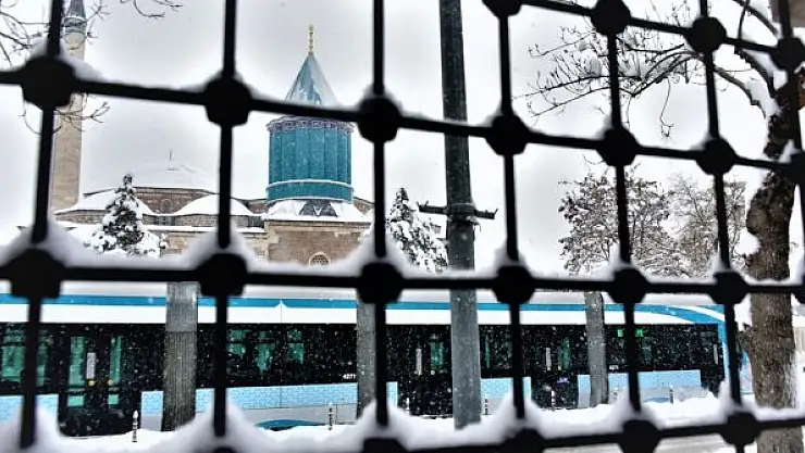 Kar yağışıyla beyaza bürünen Konya'da özellikle Mevlana Müzesi ve çevresindeki güzel görüntüler oluştu.