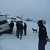 Kar yağışı nedeniyle minibüs şarampole yuvarlandı