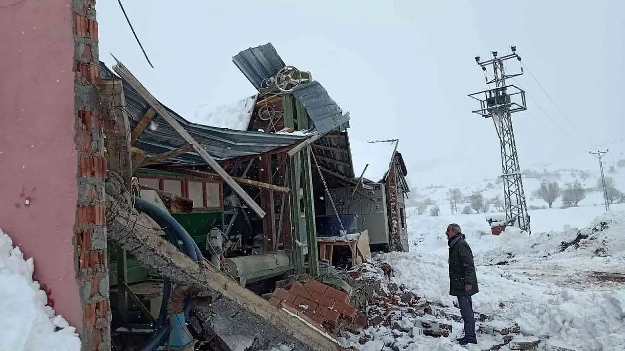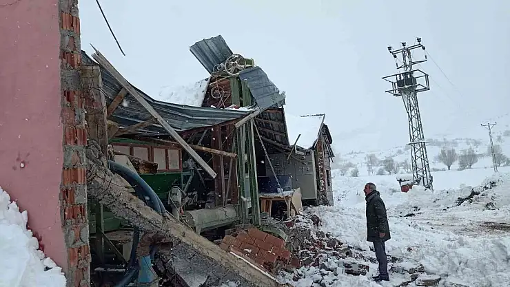 Elazığ'da etkili olan kar yağışı nedeniyle un değirmeninin çatısı çöktü. Olay da herhangi bir can kaybı yaşanmazken, maddi hasar meydana geldi.