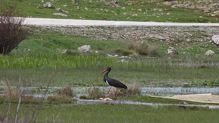 Türkiye'nin önemli sulak alanlarından Beyşehir Gölü çevresinde, nesli koruma altında olan ve yerleşim merkezlerinden uzakta nadir görülen kara leylekler görüntülendi