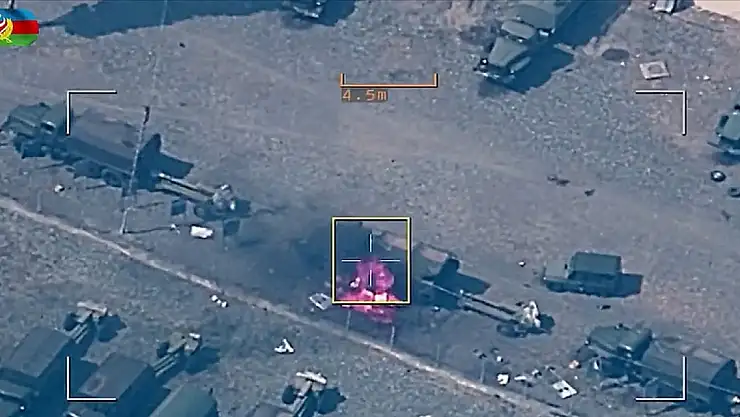 Bakanlık ayrıca Ermeni güçlere ait askeri birliğe havadan yapılan saldırının görüntülerini de paylaştı.