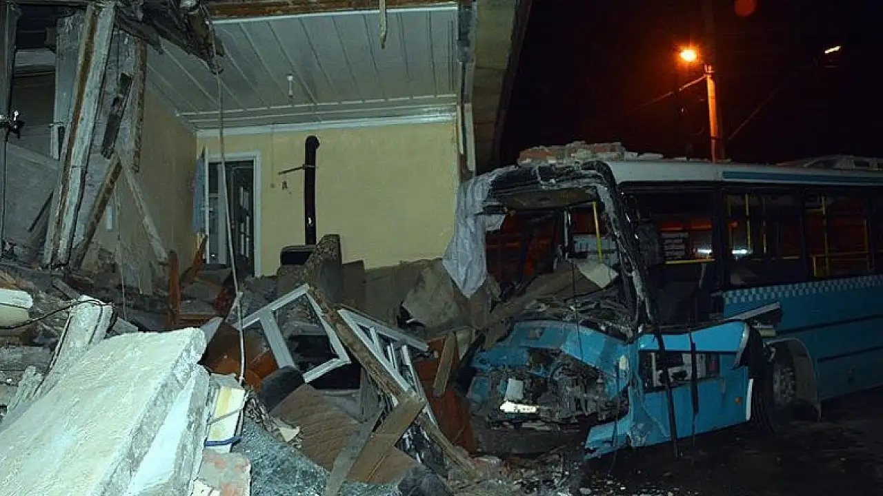 Adatepe-Kayabaşı mahalleleri arasında sefer yapan Özkan Bozmaoğlu (25) yönetimindeki 78 BL 447 plakalı özel halk otobüsü, Kayabaşı Mahallesi Hacı Alay Caddesi'nde henüz belirlenemeyen nedenle kontrolden çıkarak yol kenarında bulunan Abdullah Mangaloğlu'na ait 2 katlı eve girdi.