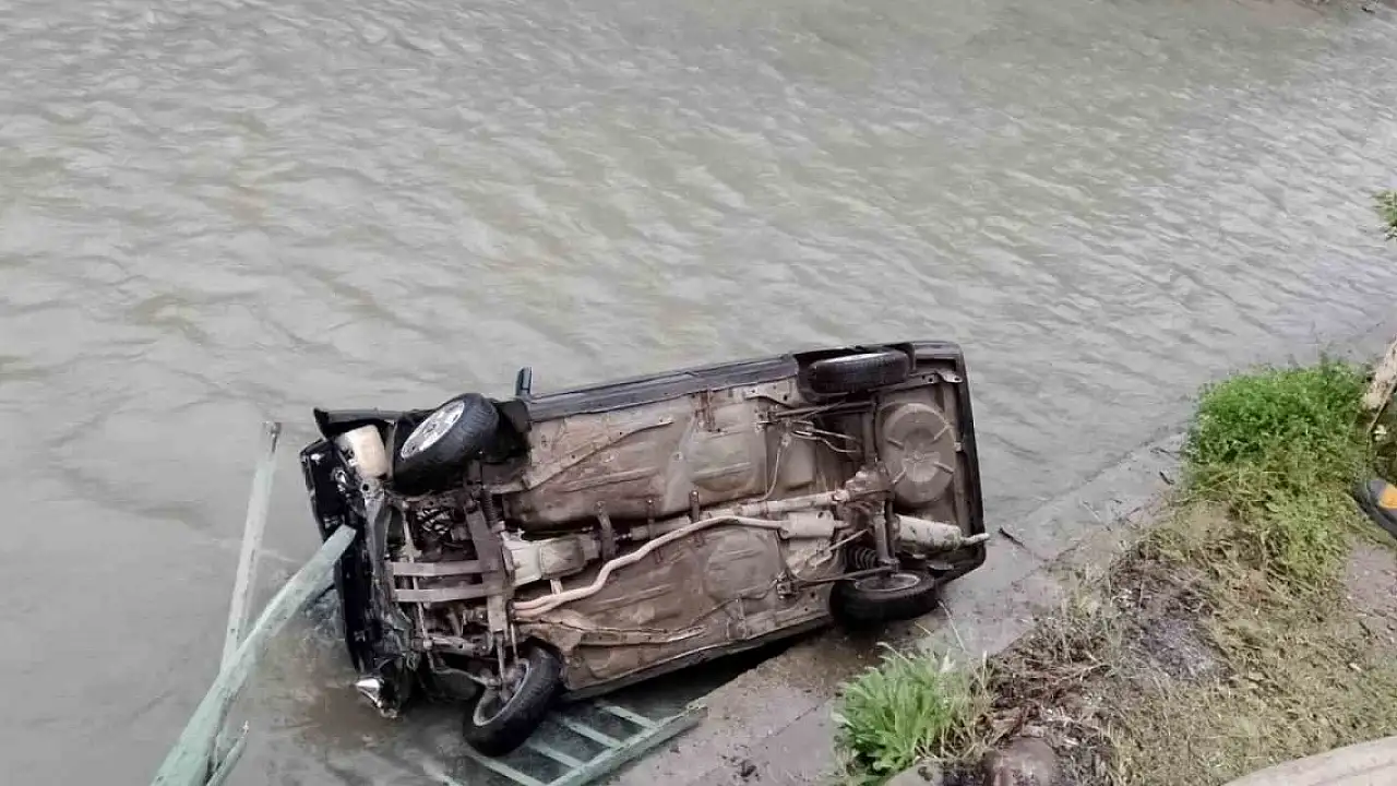 Karabük'ün Yenice ilçesinde sürücüsünün kontrolünü kaybettiği otomobil, bariyerlere çarpıp çaya uçtu.