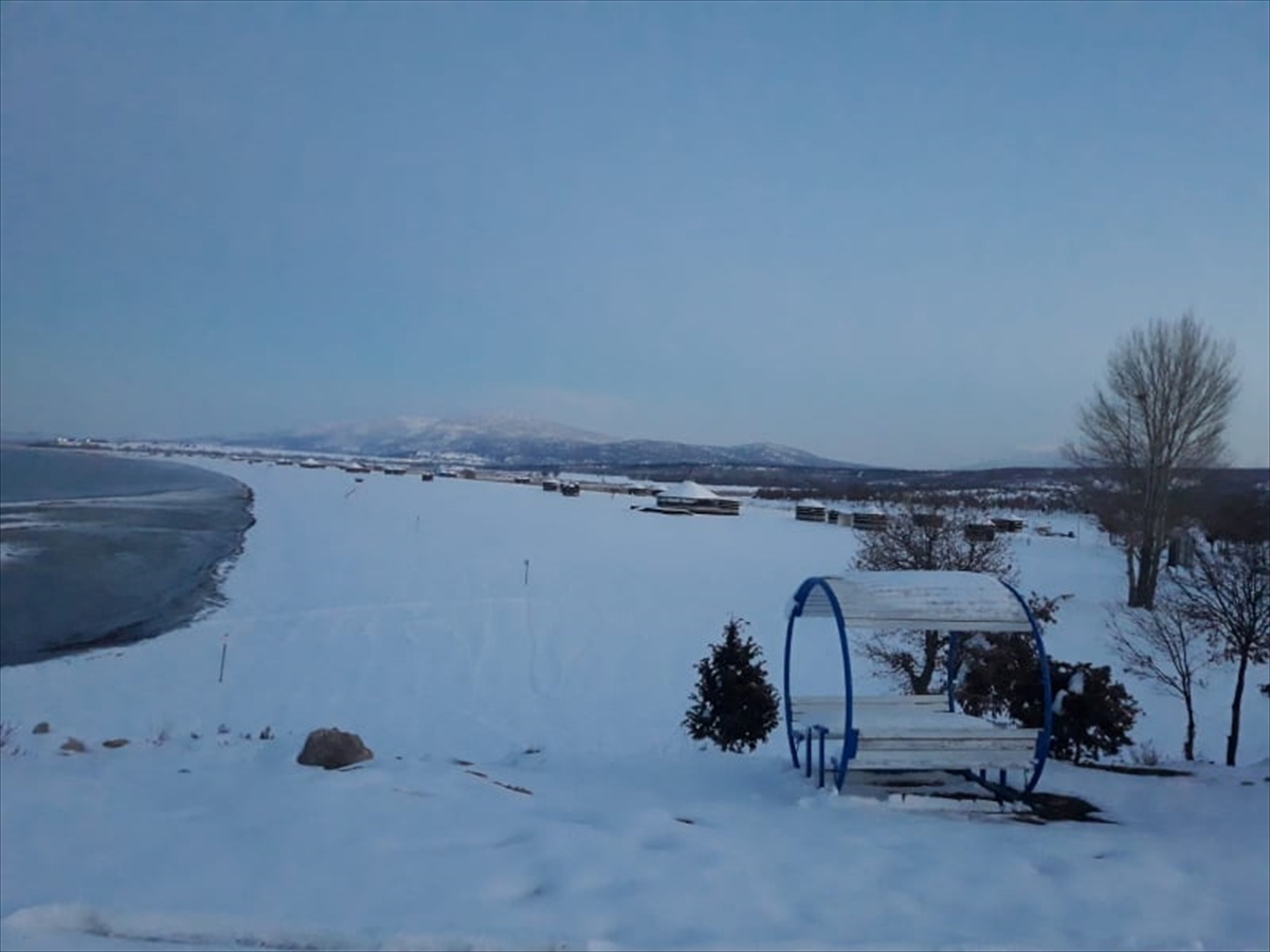 Beyşehir Gölü'nün ünlü Karaburun Plajı, son günlerde etkili olan kar yağışının ardından beyaza büründü.