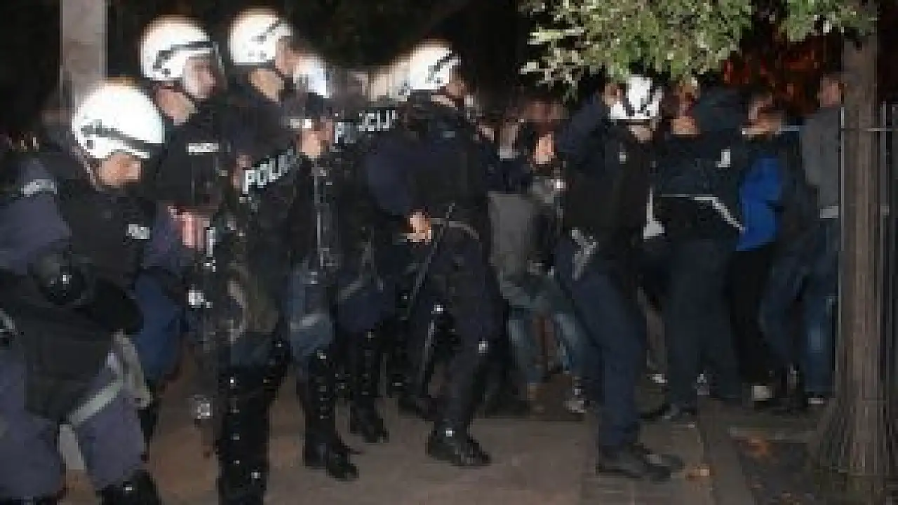 Polis, protestocuları dağıtmak için göz yaşartıcı ve ses bombası kullanırken, çıkan çatışmalarda civardaki çok sayıda dükkanın camı kırıldı.