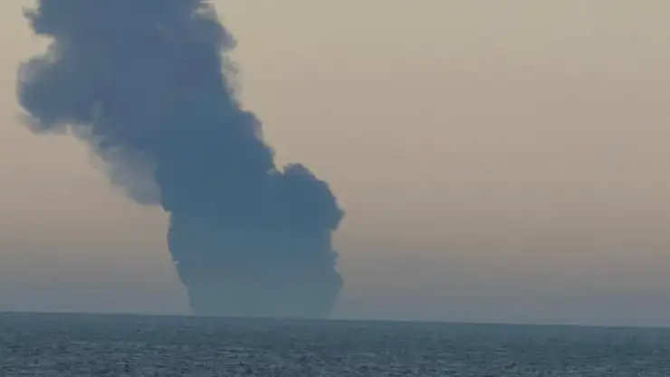 Öte yandan, yabancı menşeli gemide çıkan yangına ilişkin görüntülere ulaşıldı.