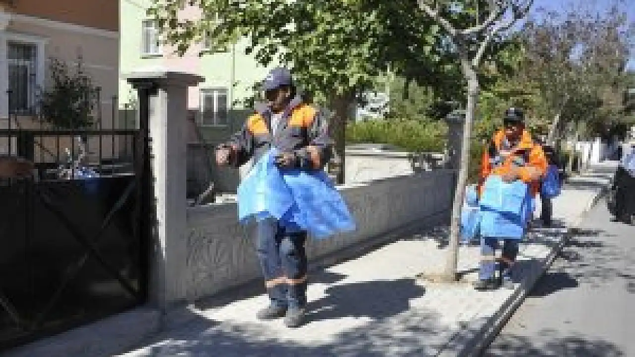 Karaman Belediye Başkanı Ertuğrul Çalışkan, yaptığı açıklamada, Belediye Temizlik İşleri ekiplerinin 56 mahalleyi dolaşarak 90 bin adet kurban poşeti dağıttığını belirtti.