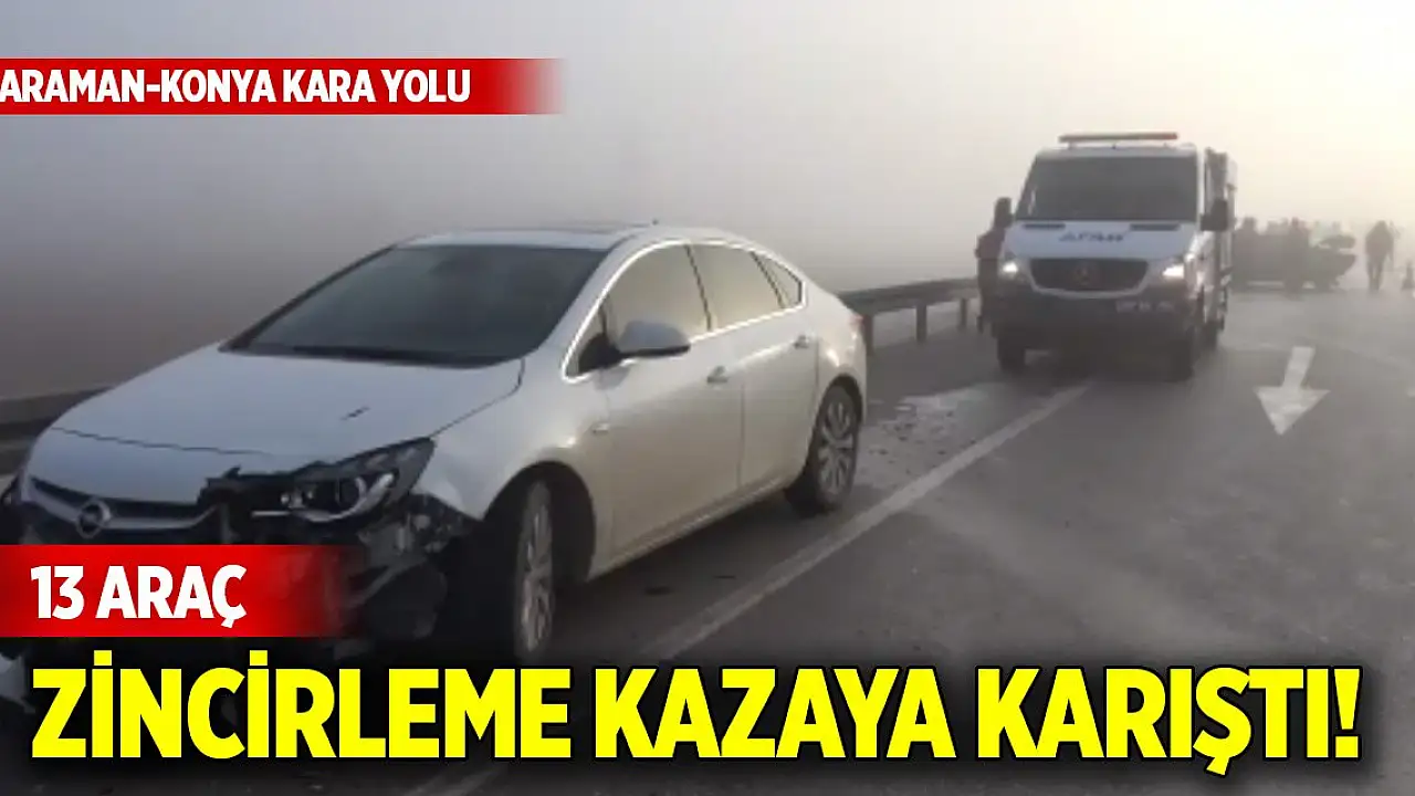 Karaman-Konya kara yolunda 13 araç zincirleme kazaya karıştı!