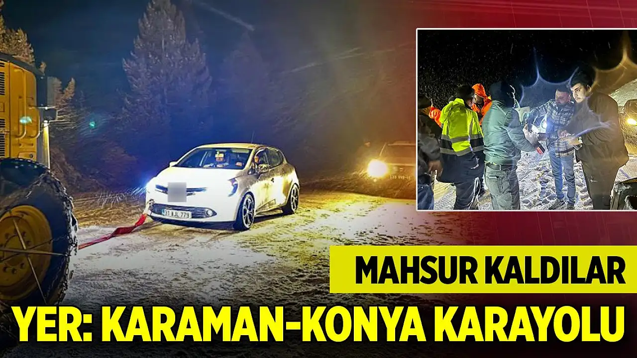 Karaman-Konya karayolunda yoğun kar yağışı... 2 kişi mahsur kaldı