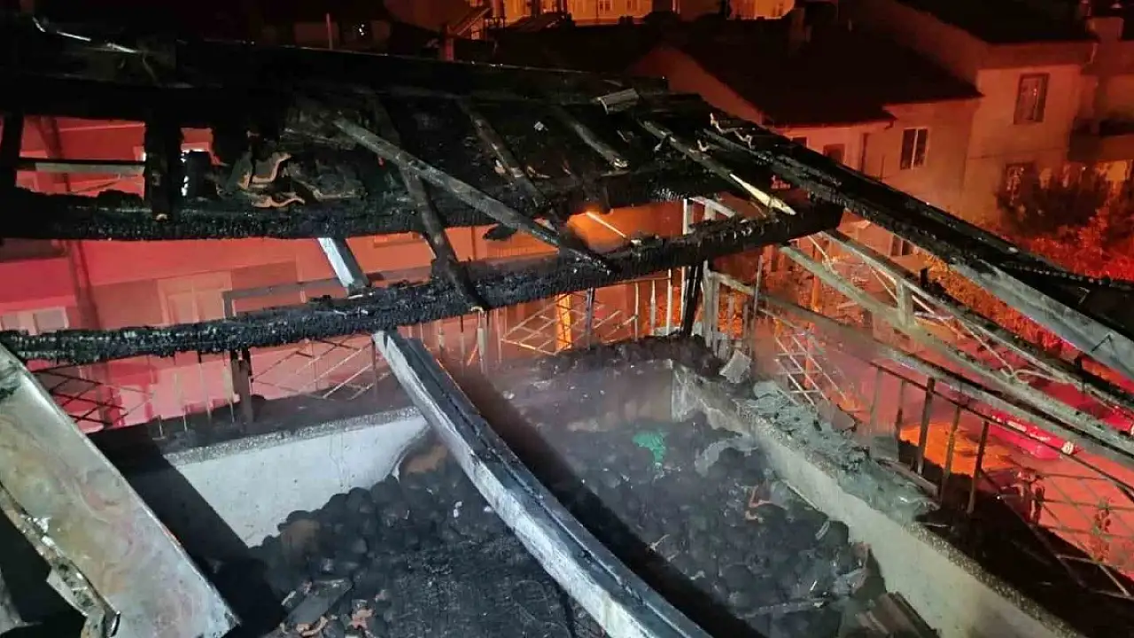 Karaman'da 2 katlı binanın çatı katında korkutan yangın