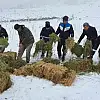 Karaman'da kar yağışı nedeniyle yiyecek sıkıntısı çeken Anadolu yaban koyunları ile yılkı atları için yonca bırakıldı.