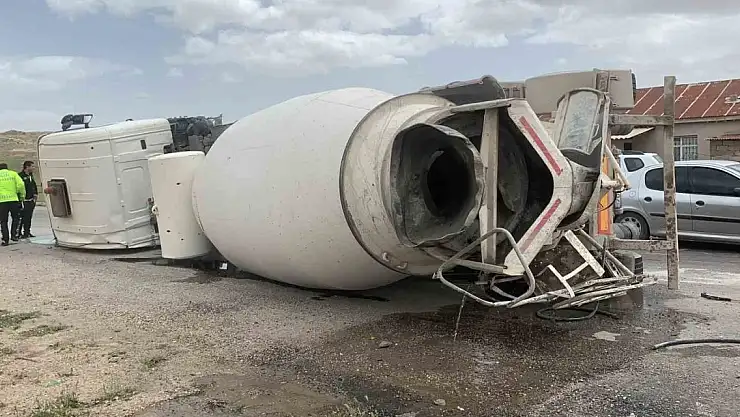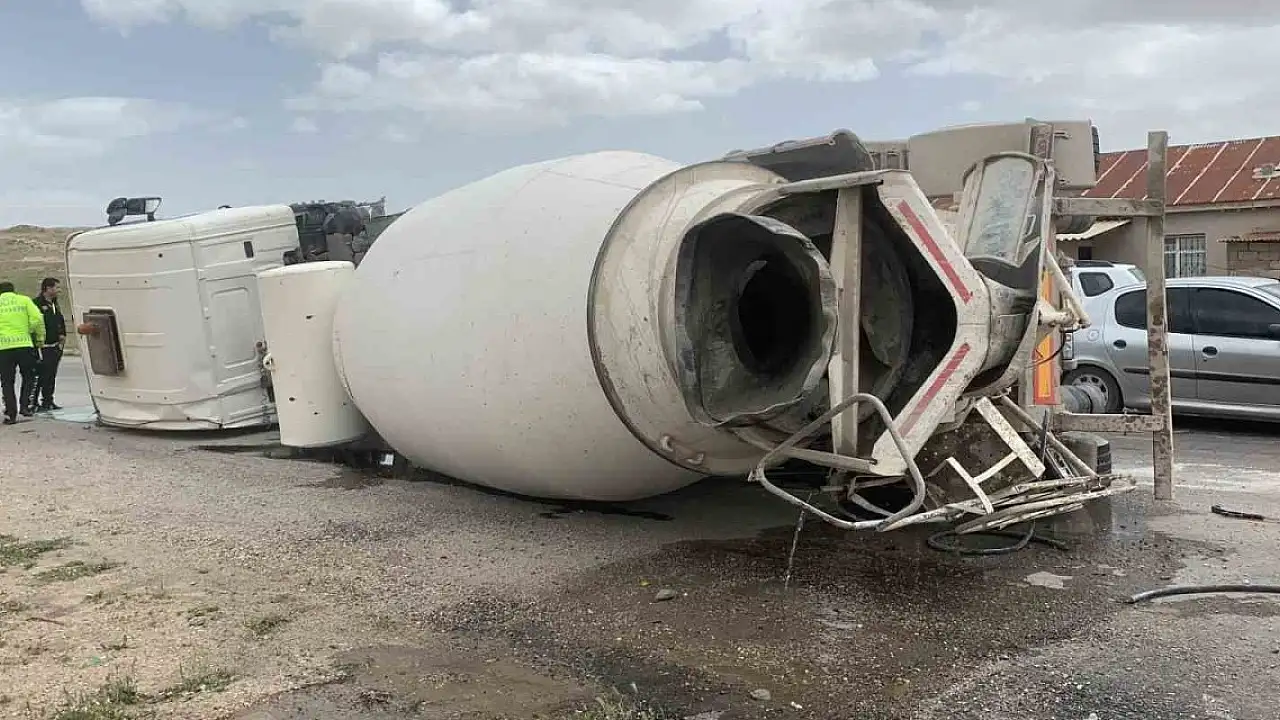 Karaman'da kontrolden çıkarak devrilen beton mikserinin sürücüsü yaralandı.