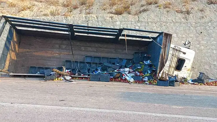 Karaman'da elma yüklü kamyon devrildi, yaralılar var