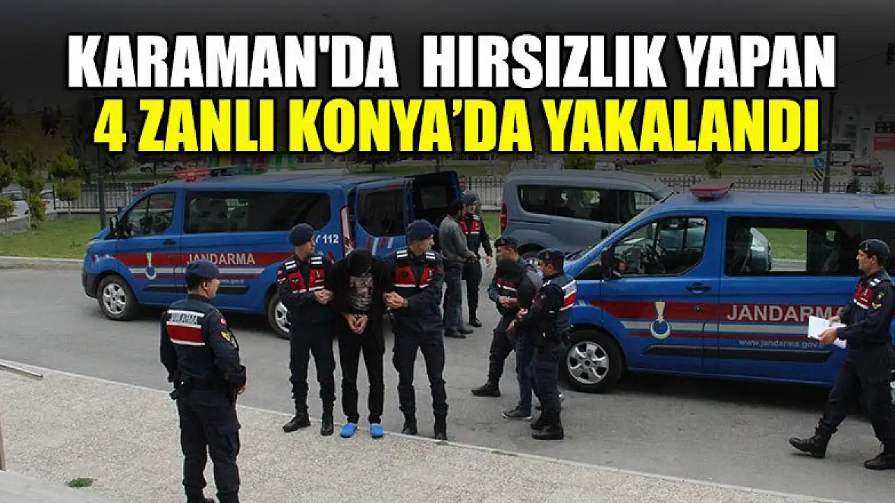 Karaman'da bir taş ocağından hırsızlık yaptıkları ileri sürülen 4 kişi, jandarmanın takibi sonucu Konya'da yakalanarak gözaltına alındı.