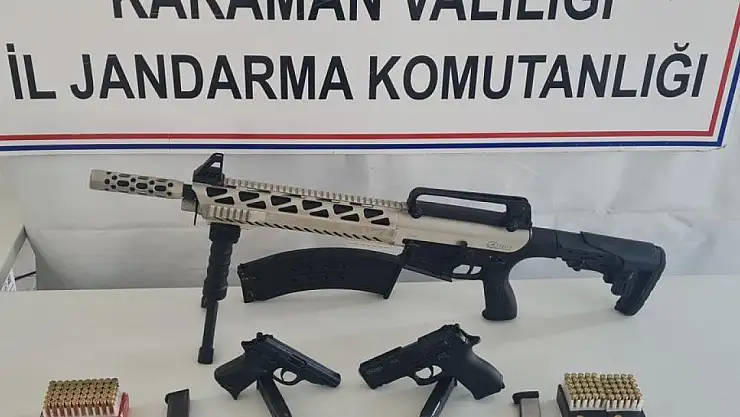 Karaman'ın Ermenek ilçesinde jandarmanın düzenlediği operasyonda ruhsatsız tabanca, tüfek ve mermiler ele geçirildi.