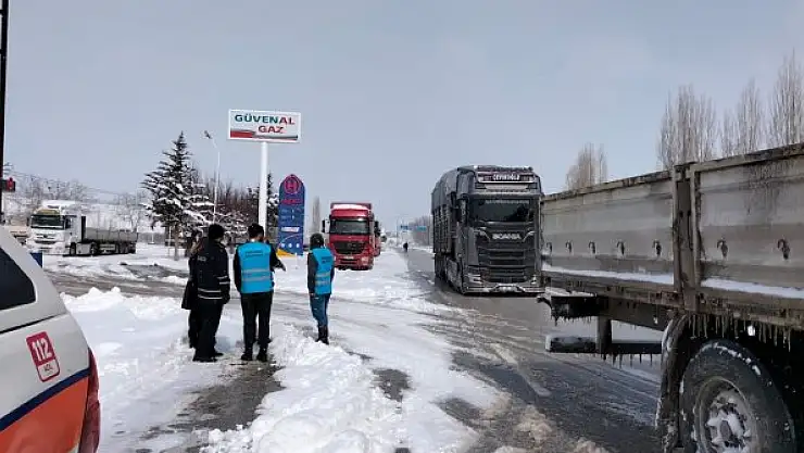 Karaman Belediyesi ekipleri, sürücülere kumanya dağıttı. AFAD İl Müdürlüğüne bağlı ekipler de sürücüleri dikkatli olmaları konusunda uyardı.