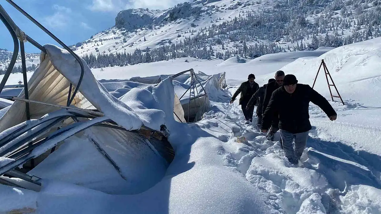 Karaman'ın Narlıdere köyünde yağan karın ağırlığına dayanamayan seralar çökerek yerle bir oldu.