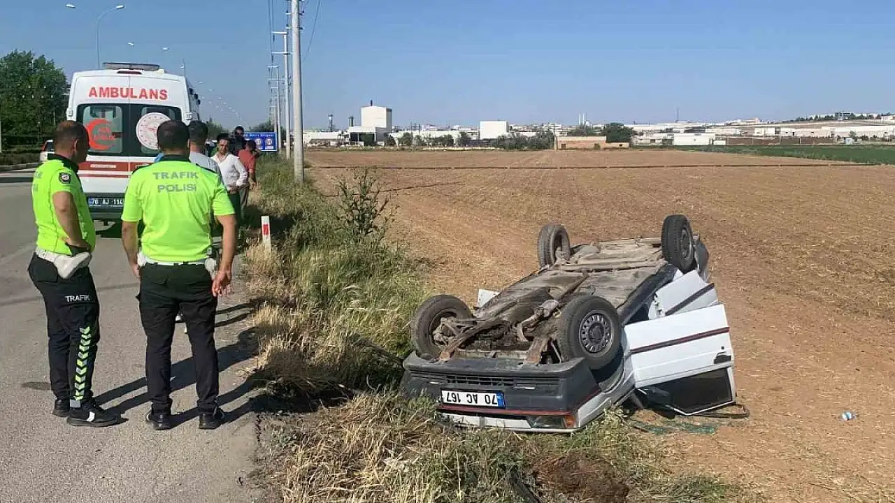 Karaman'da kontrolden çıkan otomobilin şarampole inerek tarlaya devrilmesi sonucu 1 kişi yaralandı.