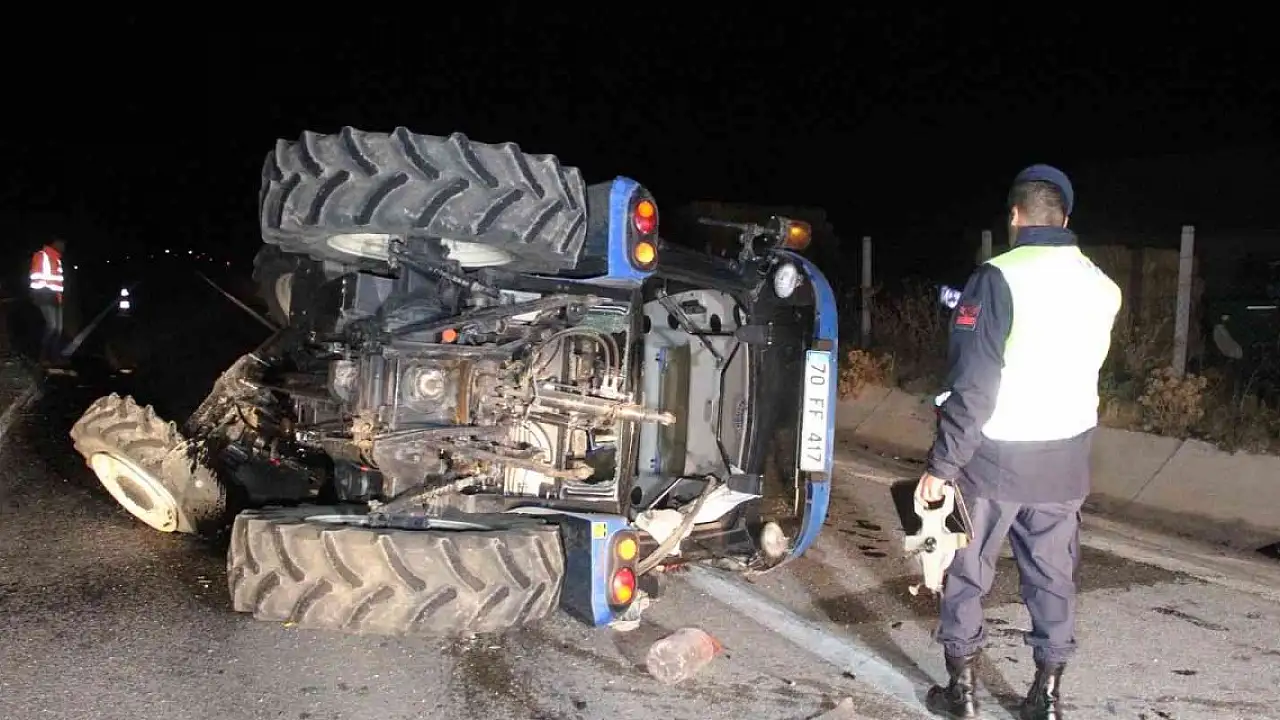 Karaman'da otomobil traktöre arkadan çarptı: 4 yaralı