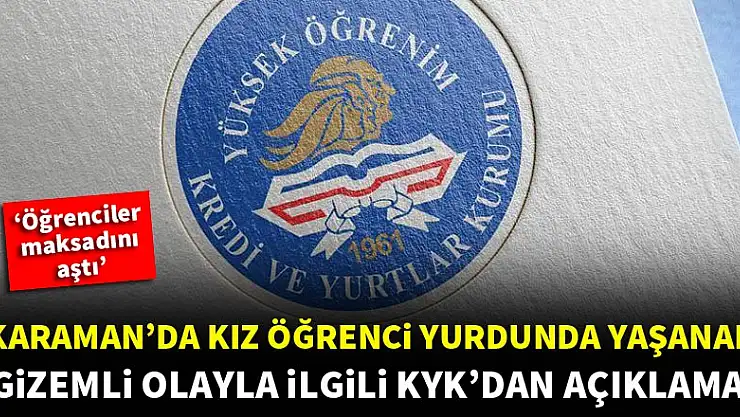 KYK'dan, Karaman İl Müdürlüğüne bağlı Nefise Sultan Kız Öğrenci Yurdu'nda yaşanan olaya ilişkin, bazı basın yayın organlarında "Karaman'daki yurtta, kız öğrencileri korkutan iddia" başlığıyla yer alan haberler üzerine yazılı açıklama yapıldı.