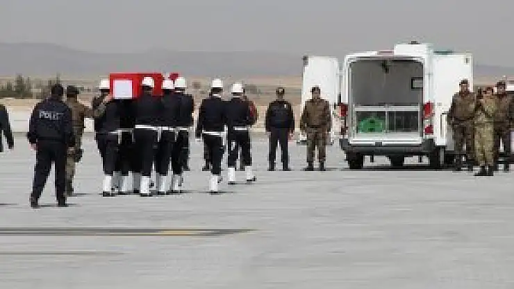Şırnak'ın İdil ilçesinde teröristlerle girdiği çatışmada ağır yaralanan ve kaldırıldığı hastanede şehit düşen Özel Harekat Polisi Hakan Yılmaz'ın naaşı memleketi Karaman'a götürülmek üzere askeri uçakla Konya'ya getirildi.