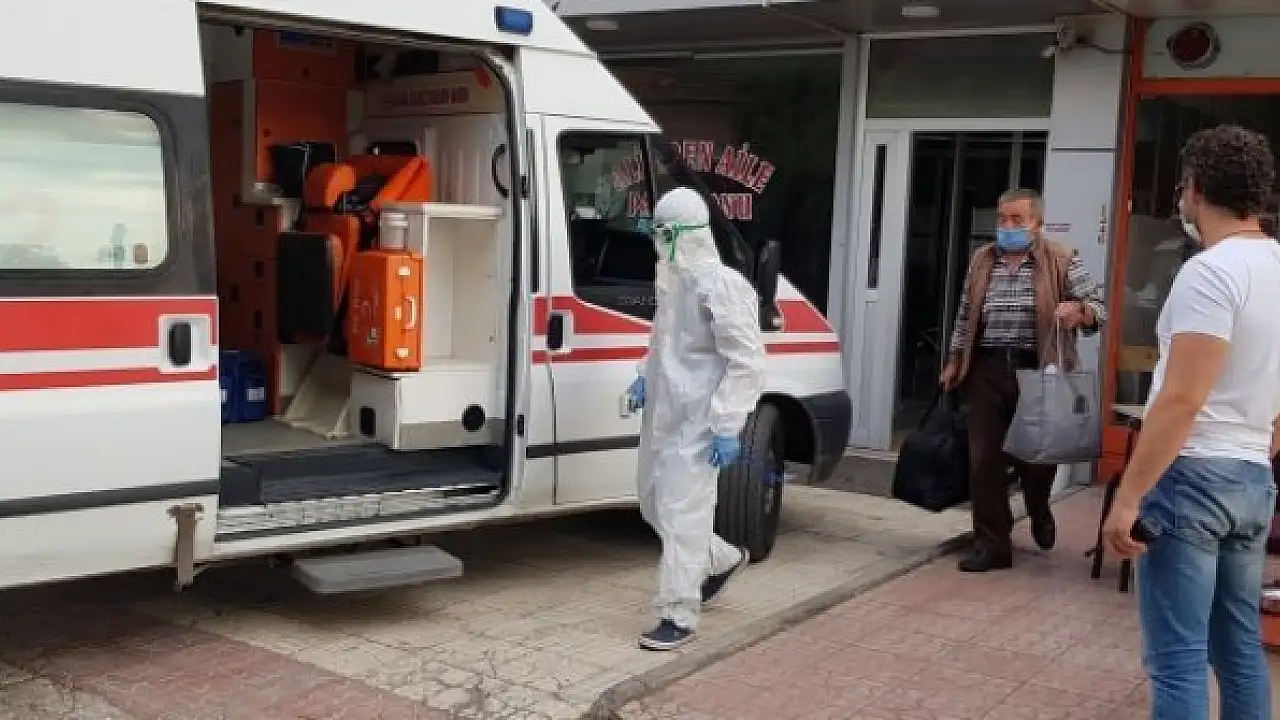 Buraya gelen sağlık ekibi tulum, maske ve taktıkları gözlükle tedbirlerini alarak hastayı ambulansla Erzincan Binali Yıldırım Üniversitesi Mengücek Gazi Eğitim Araştırma Hastanesine kaldırdı.