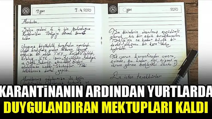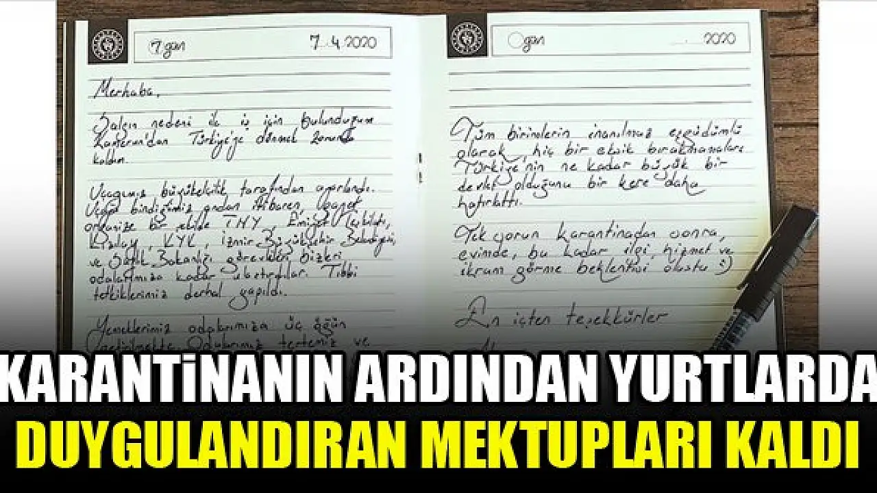 Yeni tip koronavirüs (Kovid-19) salgını nedeniyle dünyanın farklı ülkelerinden İzmir'deki Gençlik ve Spor Bakanlığına bağlı yurtlara yerleştirilen ve gözlem sürelerinin dolmasının ardından tahliye edilen Türk vatandaşlarından geriye duygulandıran mektupları kaldı.