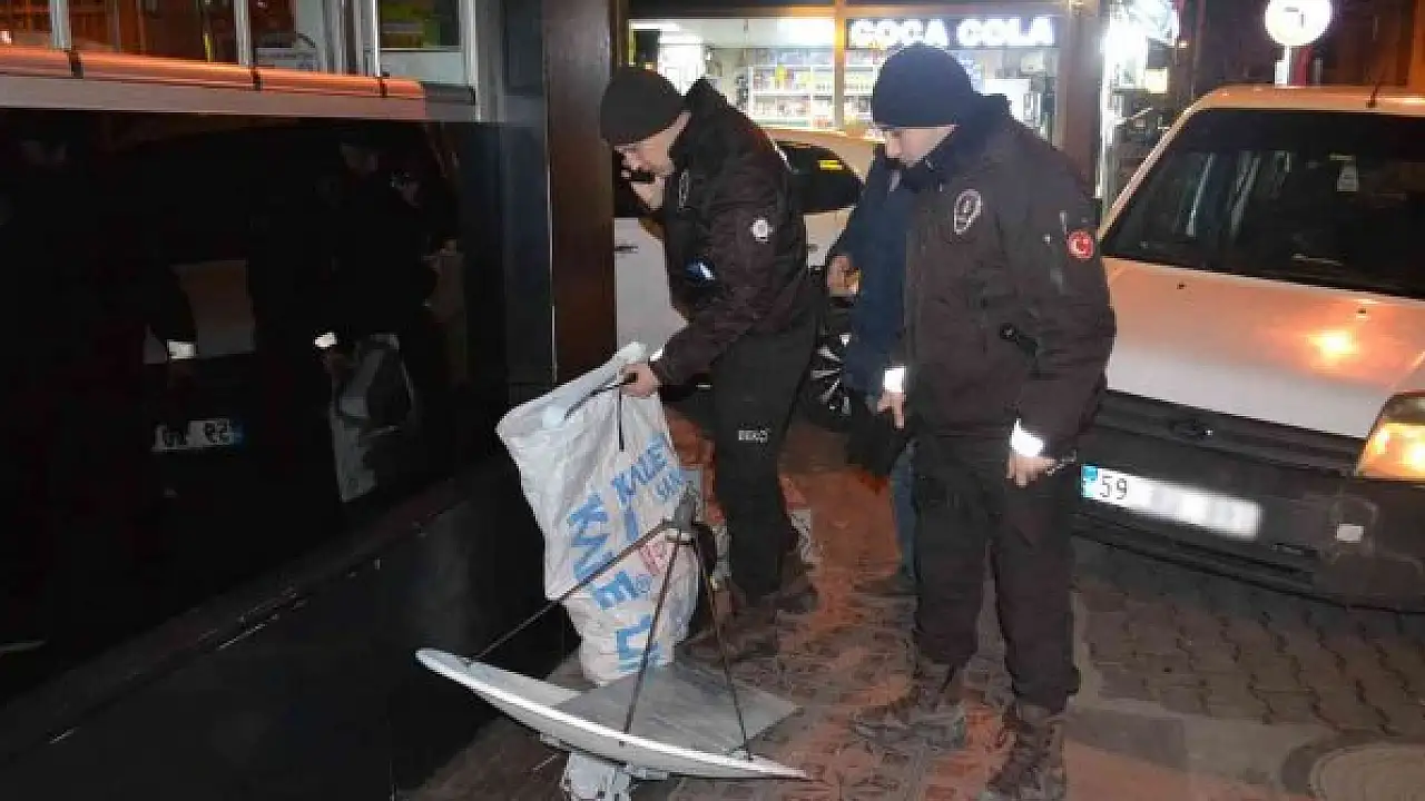 Gece saatlerinde Reşadiye Mahallesi Mustafa Kemal Caddesi'nde yaya devriye görevi yürüten bekçi görevlileri, şüpheli değerlendirdikleri, elindeki çuvalda demir parçası taşıyan bir şahsın peşine düştü. Bekçileri görünce elindeki çuvalı yol kenarına fırlatarak, kaçmaya çalışan şahıs kısa süren kovalamaca sonrası yakalandı.