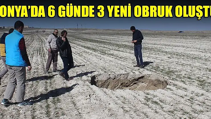 KONYA'nın Karapınar ilçesinde önceki hafta üç gün arayla 2 obruğun oluşmasının ardından bugün, yaklaşık 5 metre çapında 15 metre derinliğinde bir obruk daha oluştu.
