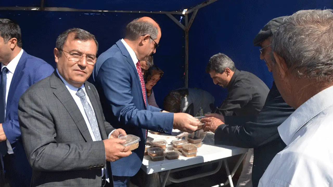 İlçe Müftüsü Kadir Demirlenk tarafından yapılan dua ile aşure vatandaşlara ikram edildi.