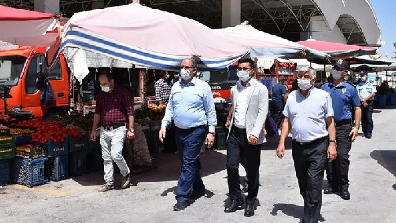 Karapınar İlçe Kaymakam Vekili İsmail Demirtaş ve Belediye Başkanı Mehmet Yaka ile birlikte Şehit Ömer Halisdemir Kapalı Sergi ve Sebze Pazarı yerinde korona virüs tedbirlerini denetledi.
