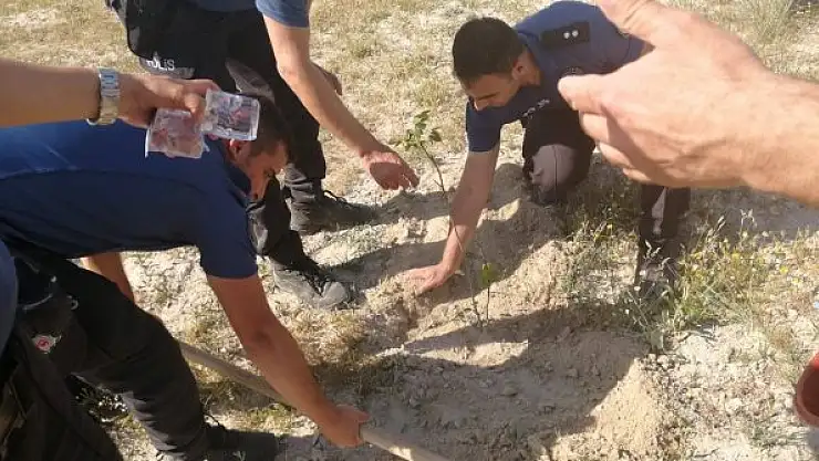 Karapınar'da polis 150 çam fidanını toprakla buluşturdu