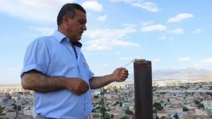 Ramazan ayının gelmesiyle 4 kez atış yapılan Ali Tepe de görevli Zeynel Emekli, bu yıl da barutu demir borunun içine yerleştirerek fitili ateşledi.