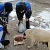 Karapınar'da Gençlik Merkezi Müdürlüğü çalışanları ve gönüllüler ilçenin bazı noktalarında aç kalan sokak hayvanlarına yiyecek verdi.