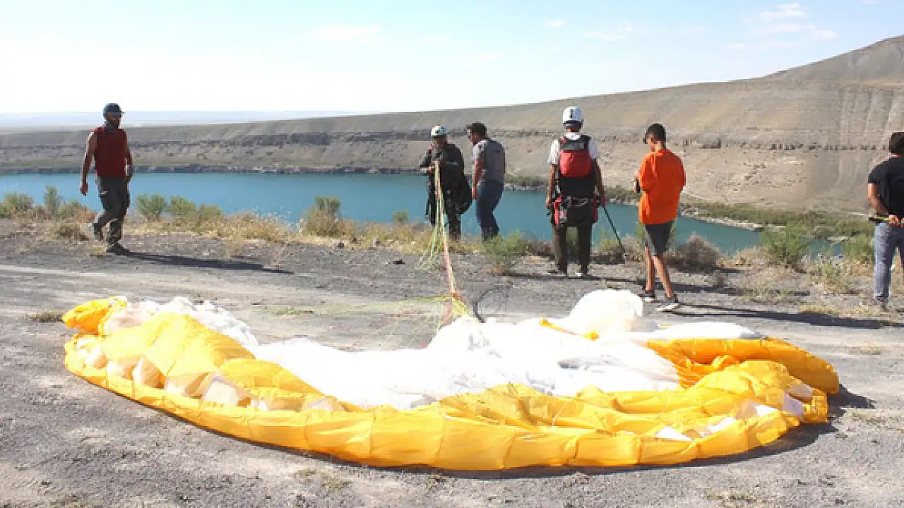 Konya Necmettin Erbakan Üniversitesi idari ve akademik personeli Karapınar'da yamaç paraşütü yaptı.