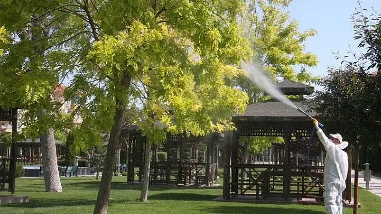 Karatay Belediyesi, yaz sıcaklarının etkisini göstermeye başlamasıyla birlikte ilaçlama çalışmalarını hızlandırdı. Karatay Belediyesi Park ve Bahçeler Müdürlüğü ekipleri, 343 bin metrekarelik bir alana sahip Konya’nın en büyük parkı olan Şehir Parkı’nda, 162 bin metrekarelik toplam alanıyla Karatay’ın ikinci büyük parkı olan Olimpiyat Parkı, 102 bin metrekarelik Adalet Parkı ve 2 milyon 470 bin metrekarelik Aslım Ormanı başta olmak üzere toplam 3 Milyon 573 bin metrekarelik yeşil alanda da yabancı ot temizliği ve ilaçlama çalışmaları gerçekleştiriyor. Ekipler, ağaçlarda yaprak biti, haşere, mantar ve böcek olmaması için doğanın dengesine uygun ve insan sağlığına zararı olmayan kimyasallarla ilaçlama çalışmalarını sürdürüyor.