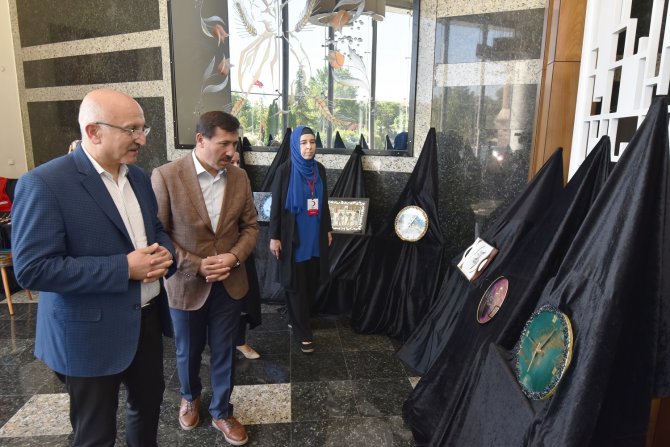 Epoksi Kurs Ürünleri Sergisi’nin açılışını yapan ve sergiyi gezen Karatay Belediye Başkanı Hasan Kılca, sergi ile eserler hakkında Kızılay Karatay Kadın Teşkilatı Başkanı Tahire Karagözler’den bilgi aldı.