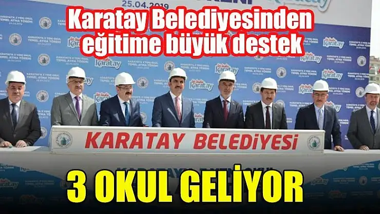 Konya'nın merkez Karatay İlçe Belediyesi tarafından ilçeye kazandırılacak ve 20 milyon liraya mal olacak 3 okulun temeli düzenlenen törenle atıldı.