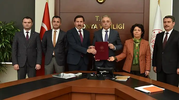 Konuşmaların ardından AKOY Projesi kapsamında ilçeye kazandırılacak eğitim yapılarının protokolü; Konya Valisi Cüneyit Orhan Toprak, Karatay Belediye Başkanı Hasan Kılca, il milli eğitim müdürlüğü ile çevre ve şehircilik müdürlüğü yetkilileri tarafından imzalandı.