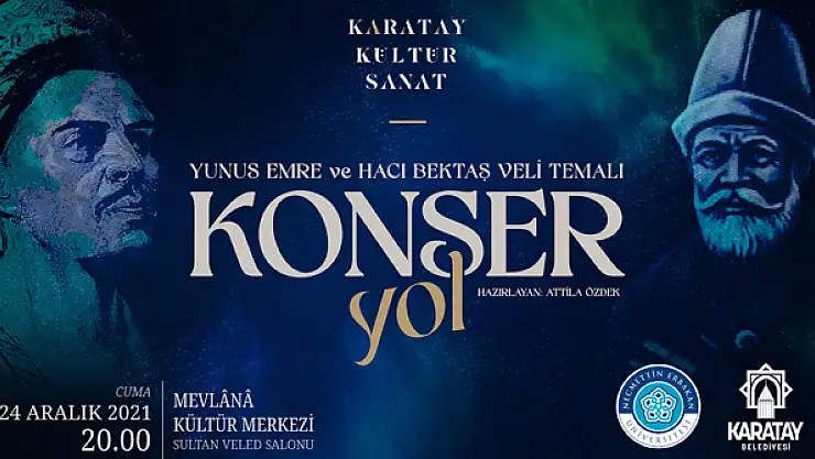 Karatay Belediyesi ve Necmettin Erbakan Üniversitesi işbirliğiyle, tasavvuf ehli Yunus Emre ve Hacı Bektaş Veli temalı 'Yol' adlı bir konser programı düzenlenecek.