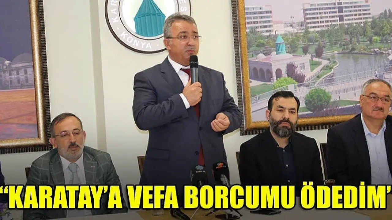 31 Mart Yerel Seçimlerinde aday gösterilmeyen AK Partili Karatay Belediye Başkanı Mehmet Hançerli, basın mensuplarıyla bir araya geldi. 15 yıldır Karatay Belediye Başkanlığı yapan Hançerli, “3. Dönem sonunda vatandaşta yapılan memnuniyet anketinde Karatay yine zirvede. Karatay’ın istikbalini ileride göreceksiniz. Karatay daha da ileriye gidecek. Karatay’a olan vefa borcumu ödedim” dedi