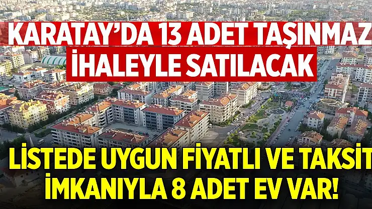 Mülkiyeti Karatay Belediyesi'ne ait çok sayıda arsa ve konut ihale ile satışa çıkarıldı.13 adet taşınmazın, 8 adedi konutlardan oluşuyor. Konut fiyatlarının uygunluğu ise dikkat çekiyor.