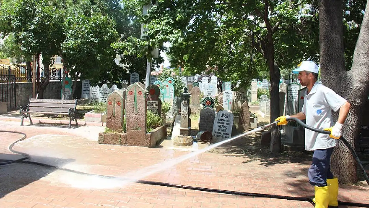 Karatay'da cami ve mezarlıklarda bayram temizliği